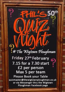 We are taking bookings for Phils 50th Quiz Night! This gets booked fast…
