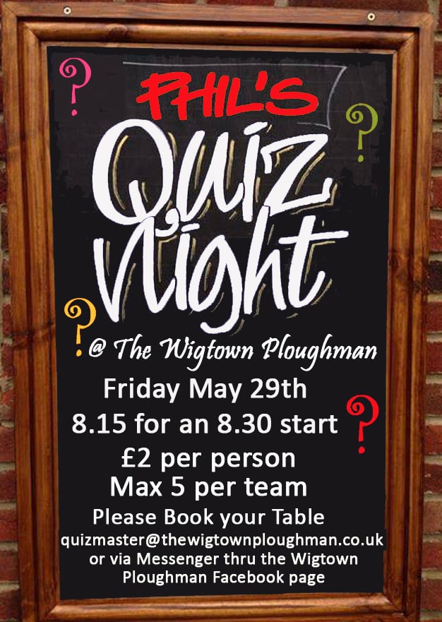 We are taking bookings for Phil’s Quiz Night! This gets booked fast… As per usual, to book in, email quizmaster@thewigtownploughman.co.uk